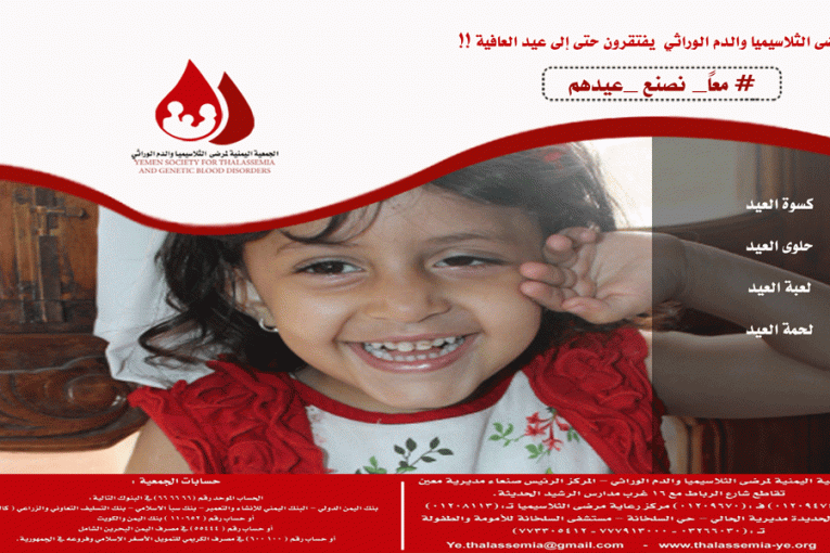 الجمعية تطلق حملة معاً نصنع عيدهم لدعم مرضى الثلاسيميا الجمعية تطلق حملة معاً نصنع عيدهم لدعم مرضى الثلاسيميا أطلقت الجمعية اليمنية لمرضى الثلاسيميا والدم...