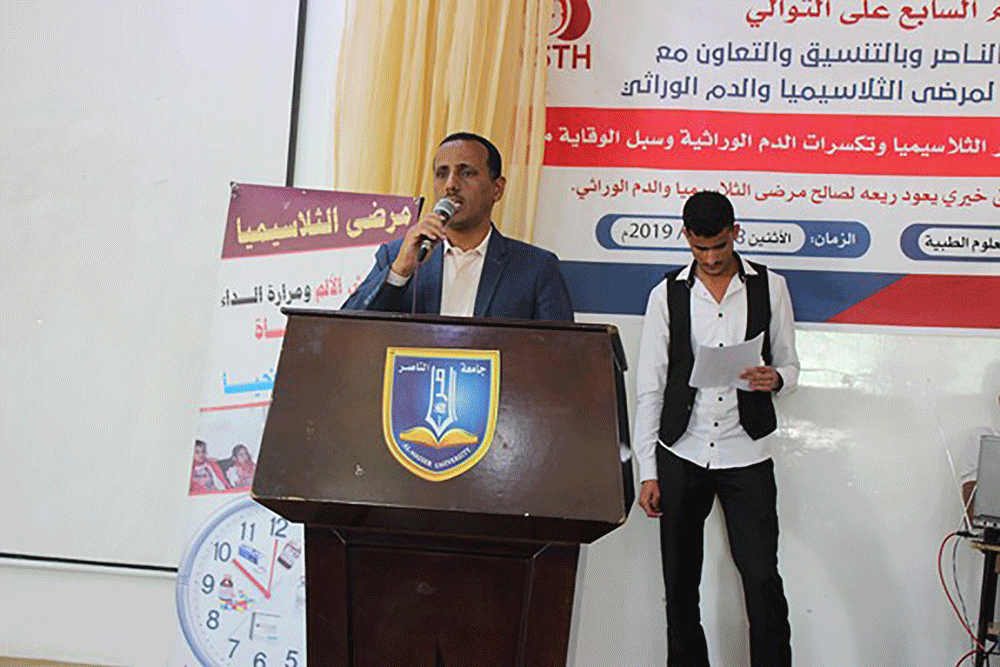أقيمت يوم الإثنين الموافق 8/4/2019م فعالية توعوية بجامعة الناصر تخللها العديد من الفقرات المتنوعة والكلمات المعبرة والتي هدفت إلى مد يد العون لمرضى الثلاسيميا...