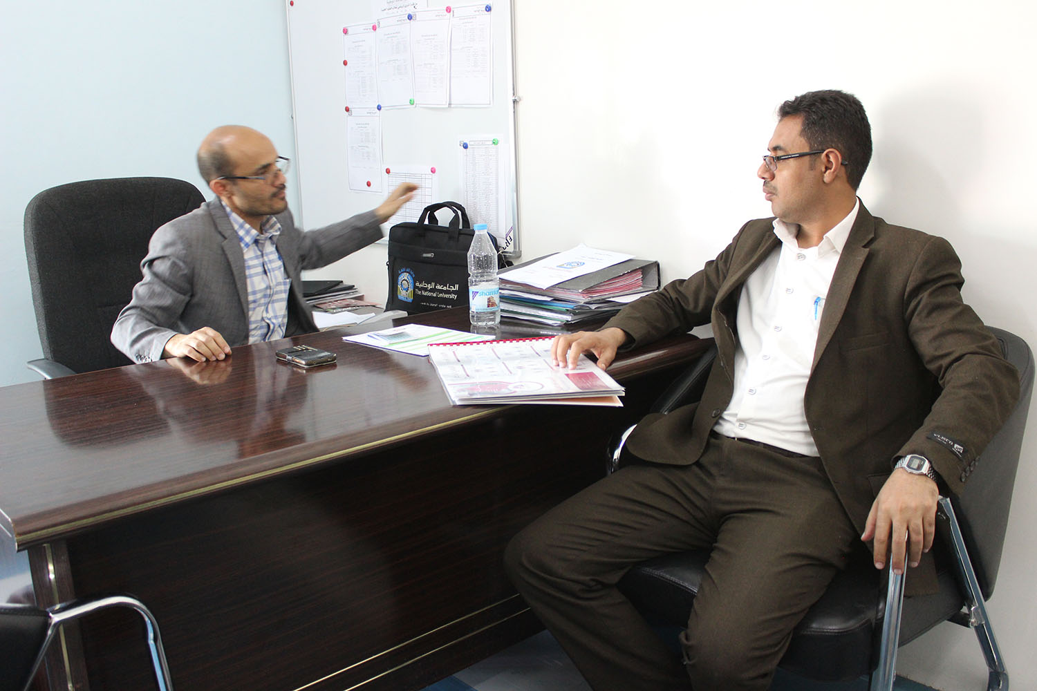 نظم قسم العلاقات العامة والإعلام في الجمعية اليمنية لمرضى الثلاسيميا والدم الوراثي بالشراكة مع الجامعة الوطنية كلية العلوم الطبية محاضرة توعوية للتعريف بأمراض تكسرات الدم الوراثية وسبل الوقاية منها وذلك بإجراء فحص ما قبل الزواج حيث التقى الأستاذ عبدالله الجادعي رئيس قسم العلاقات العامة والإعلام بعميد الكلية الدكتور توفيق العبيدي وناقشا آلية التعاون بين الكلية والجمعية وتكوين فريق سفراء الإنسانية لمساندة الجمعية في تبني قضية أطفال الثلاسيميا والدم الوراثي وعمل برنامج توعوي لطلاب الجامعة كون الجمعية تتحمل العبء الثقيل في إيصال الرسائل التوعوية لكافة أبناء المجتمع المقبلين على الزواج في الجامعة، وقد قدم الأستاذ الجادعي محاضرة توعوية للفريق مبيناً الدور الذي يلعبه الشباب في المجتمع وأهمية دورهم في نقل الرسائل التوعوية منوهاً للجميع بأنه يمكن لأي شخص تفادي المخاطر المحتمل حدوثها للأبناء بالقيام بإجراء الفحص الطبي قبل الزواج من جهتهم أبدى المشاركون استعدادهم لتبني القضية.