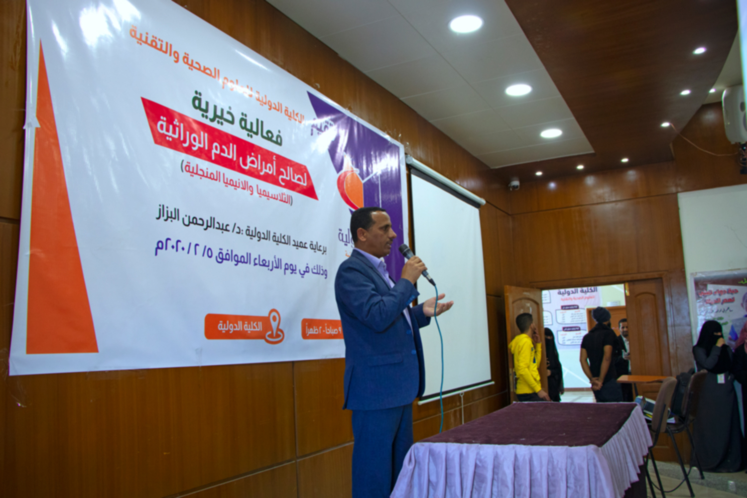 شارك الدكتور مختار إسماعيل مدير مركز رعاية مرضى الثلاسيميا والدم الوراثي في الفعالية التوعوية عن مرض الثلاسيميا وأمراض تكسرات الدم الوراثية والتي أقيمت صباح يومنا هذا الأربعاء 05 / 02 / 2020م بالكلية الدولية للعلوم الصحية والتقنية. وألقى في الفعالية كلمة عبر فيها عن شكره للجهود المبذولة من قبل عمادة الكلية واساتذتها وطلابها في تبني هذه الفعالية التوعية الهادفة لمكافحة هذه الأمراض المزمنة، كما تطرق خلال كلمته إلى جهود الجمعية خلال العشرين عاماً المنصرم وتكفلها بالعبء الأكبر في سبيل مكافحة تلك الأمراض منوهاً إلى أن موضوع التخلص من الثلاسيميا والأنيميا المنجلية يحتاج إلى جهود كبيرة وتبني حقيقي من الدولة وتعاون جميع الجهات المعنية في وزارات : “الصحة والعدل والأوقاف والتربية والتعليم العالي والتدريب الفني والمهني والشئون الاجتماعية والشباب والرياضة” والمنظمات المحلية والدولية العاملة في بلادنا ورجال المال والأعمال وكل فئات المجتمع.