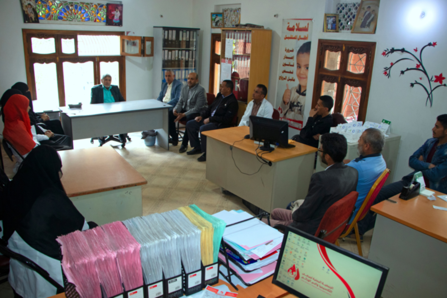 عُقد يوم الخميس الماضي 2020/4/23 اجتماعاً استثنائياً بموظفي مركز رعاية مرضى الثلاسيميا والدم الوراثي، وذلك برئاسة رئيس الجمعية د. أحمد شمسان المقرمي؛ لمناقشة آلية سير العمل خلال أيام الشهر الفضيل.